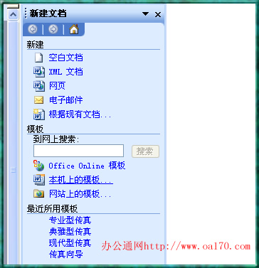 第二種方法比較簡單了用安全模式打開word以后,新建一個文檔如下圖在word右邊就會出現下圖,然后點擊“本機上的模板”
