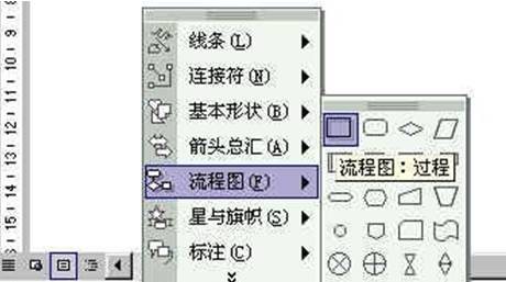 1、單擊“繪圖”工具欄上的“自選圖形”,然后選擇“流程圖”,這里就可以看到眾多制作流程圖時所用到的形狀了,大家可以選擇自己喜歡的的形狀;