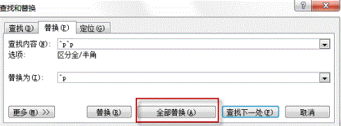 pc6小編在這里希望段落之間留下一行空行,刪除其它多余的。因此,可以在查找欄輸入^p^p,替換欄輸入^p,將兩行空行變成一行。然后,按全部替換按鈕