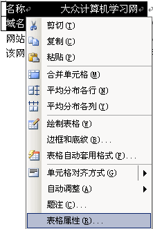 選擇整個表格,點擊右鍵,彈出菜單,如下圖二所示。