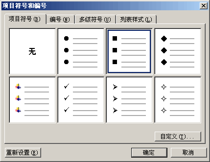 執行菜單操作“格式”→“項目符號和編號”,就會彈出如下圖。