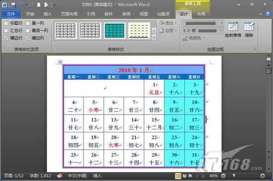 圖2 打開“2010年日歷”模板
