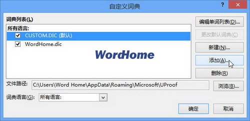 第3步,打開“自定義詞典”對話框,單擊“添加”按鈕,如圖3所示。
