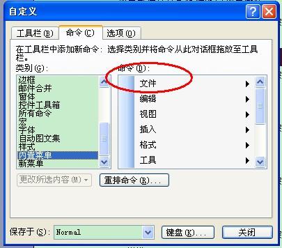 解決方法:在工具欄上右鍵單擊,選自定義,選擇命令選項,按住CTRL的同時用鼠標按住文件拖放到菜單欄上,以后就在文件菜單下調(diào)用另存為和頁面設置,也可用同樣的方法把頁面設置和另存為放到工具欄上作為快捷調(diào)用