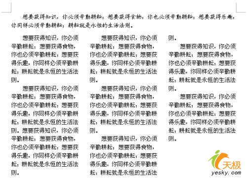 這樣就輕松實現了在同一文檔中一欄與多欄文字并存的格式。