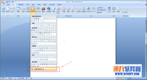 本方法適用于office 2007 ,office 2003中選擇自選圖形后會自動出現繪圖畫布
