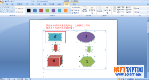 1、我們在做流程圖的時候會在word中插入多個形狀,尤其是流程圖的時候會用到很多圖形,但使用起來的時候沒有辦法一起選中,只能一個個通過Ctrl或Shift來選中,很麻煩