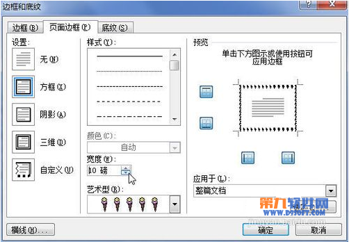 5、在“寬度”編輯框中設置藝術型邊框的寬度。