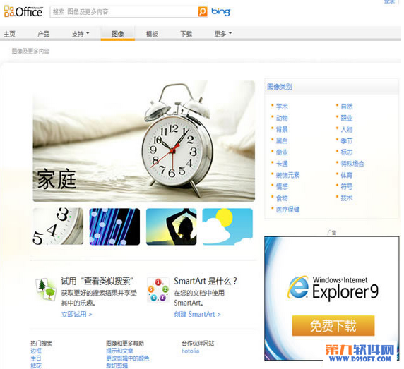 步驟三、這時候會彈出微軟官方的圖片頻道,進(jìn)入后我們可以看到右邊有很多“圖像類別”,選擇自己想要的剪貼畫類別,點擊進(jìn)入;