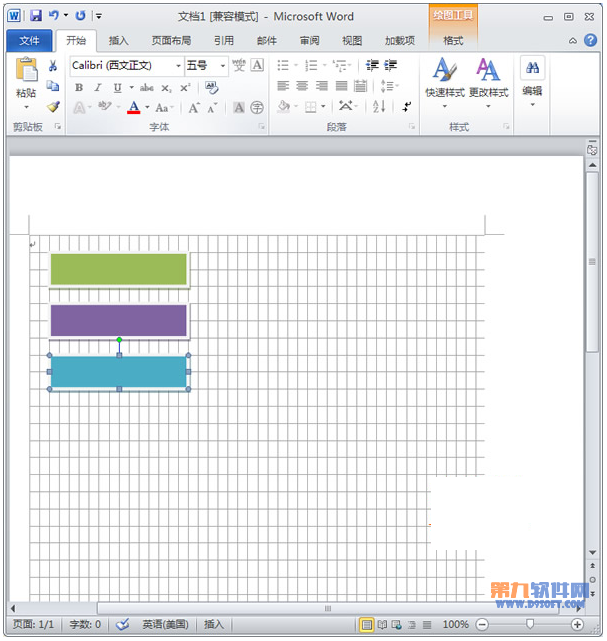 6、按照上述步驟4、5再添加幾個形狀,用鼠標拖動任意一個形狀,該形狀就會在橫向和縱向上以一個小網絡為單位進行移動,這樣就能很容易看出來編輯對象是否對齊。