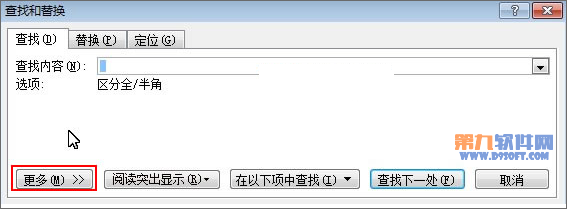 ②彈出查找與替換對話框,在查找選項卡中,單擊更多選項。