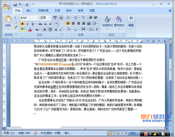 ?、賳覹ord2007,打開一份介紹廣州亞運會的文檔,我們要將里面的英文突出顯示,單擊菜單欄--開始--編輯--查找。