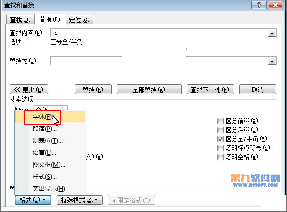 ?、芮袚Q到替換標簽,單擊格式--字體選項。