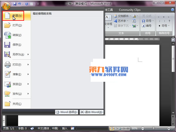 3、然后單擊主界面左上角office按鈕,選擇新建。