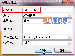 2、彈出新建構建基塊對話框,名稱改為*客戶聯系卡,類別為常規,確定。