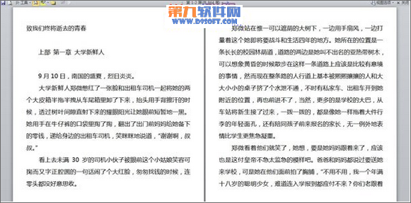①打開(kāi)Word2010,將文章復(fù)制進(jìn)去,然后點(diǎn)擊視圖--閱讀版式視圖按鈕。