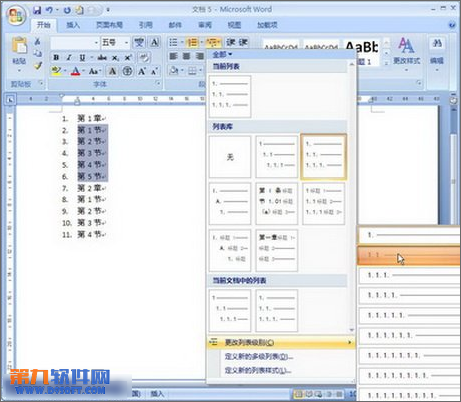 3、返回Word2007文檔窗口,可以看到創(chuàng)建的多級列表。