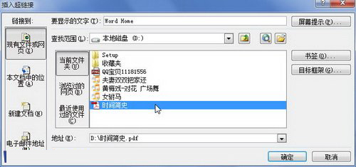 圖1 單擊“超鏈接”按鈕第2步,在打開的“插入超鏈接”對話框中,“鏈接到”區域保持選中“所有文件或網頁”選項。然后單擊“查找范圍”下拉三角按鈕,查找并選中鏈接目標文件,單擊“確定”按鈕即可,如圖2所示。
