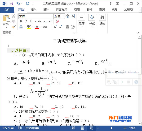 3、OK,我們的二項式定理已經插入到了文檔中,設計完成之后的效果如下圖所示。
