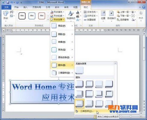 如果用戶希望藝術字棱臺效果進行更詳細的設置,可以在棱臺列表中選擇“三維選項”命令