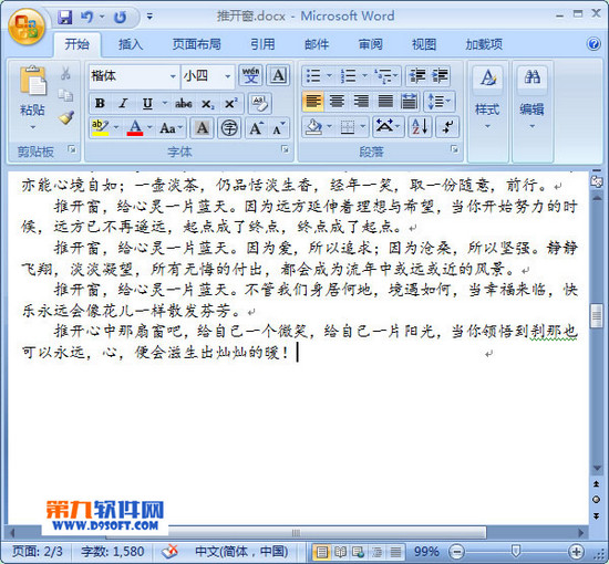1、用Word2007打開一篇文檔,選中我們需要分頁的位置。