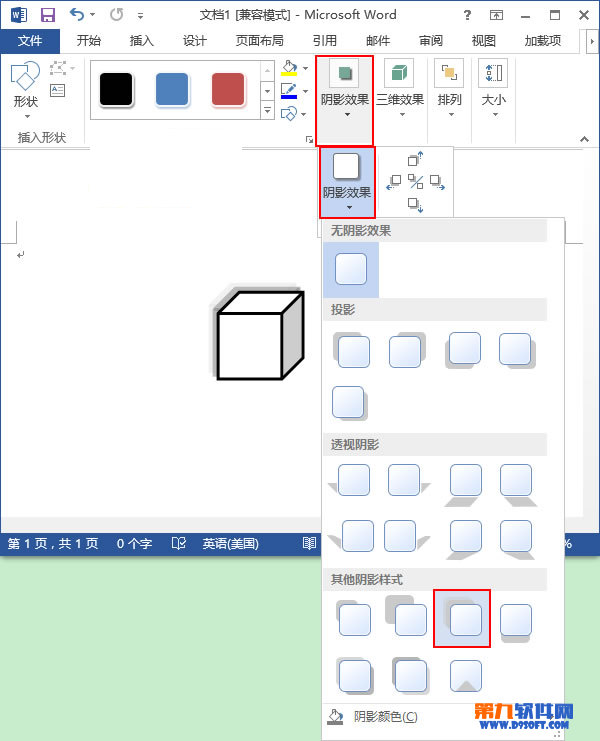 [2] 現在,我們選擇“陰影效果”選項組中的“陰影效果”命令,然后在彈出的下拉列表中選擇“陰影樣式16”。