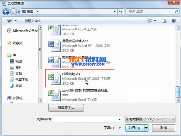 2、彈出選取數據源對話框,雙擊郵箱地址xls文件。