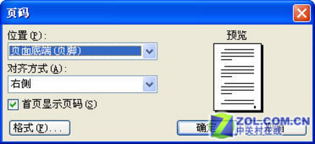 將光標定位在分頁符前面的文字頁中, 打開“插入”菜單, 選擇“頁碼”命令, 彈出“頁碼”對話框, 設置一種頁碼樣式, (如圖2)所示。