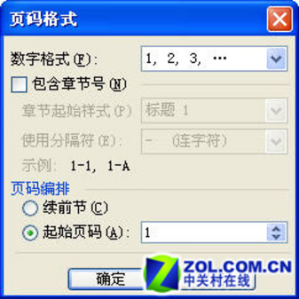 再單擊“格式”按鈕, 選中“頁碼格式”對話框中“頁碼編排”欄中的“起始頁碼”單選項, 并將后面輸入框中的數字設為1, 當然可以根據具體要求靈活設置, (如圖3)所示。