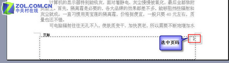設置好后, 連續單擊“確定”按鈕。 在Word編輯狀態, 可以看到在頁面的下方已經插入了一個頁碼, 在分頁符下面的文字頁中, 雙擊頁碼, 激活頁眉和頁腳設置, 選中頁碼, (如圖4)所示。