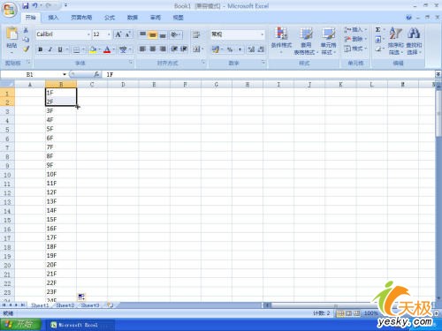 第一步:先新建一Exce文檔,在B1單元格中輸入:”1F”,再把光標置于B1單元格右下角,待其變為自動填充柄時,向下拖拉生成多個計劃任務的名稱(數量等于實際的計劃任務數),比如要生成100個計劃任務名,則拖拉至”100F”(圖2);
