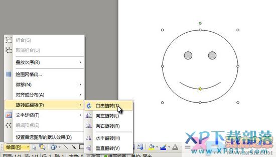 11. 移動或復制對象。按住Shift鍵后再拖動可按垂直或水平方向移動;同時按Shift鍵和Ctrl鍵可復制圖形等對象按垂直或水平方向移動到新位置;按Ctrl鍵后再拖動對象可復制到任意位置.12. 對象的旋轉或翻轉。選中對象——繪圖工具欄——繪圖——旋轉或翻轉——[自由旋轉],用環型箭頭指針套住一綠控點,牽引對象繞其質心旋轉;若需以150為角度改變單位旋轉,可在牽引同時按住Shift鍵.
