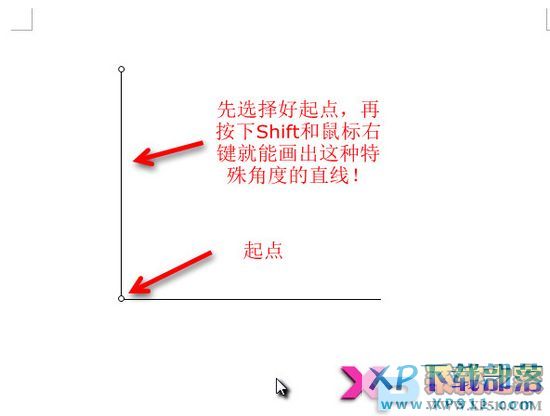5. 畫特殊角度的直線。如果想畫水平、垂直或150、300、450、600、750角的直線,則固定一個端點后在拖動鼠標時按住Shift鍵,上下拖動鼠標,將會出現上述幾種直線選擇,合適后松開Shift鍵即可(同時按住Ctrl鍵可畫出從起點向兩側延伸的直線)。