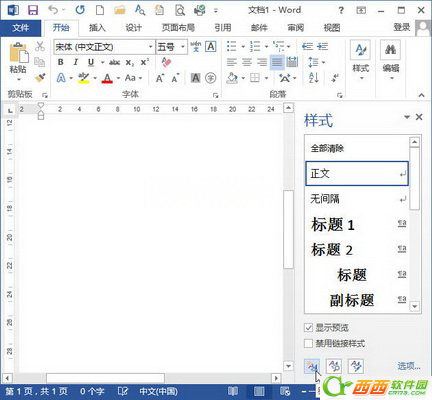 第1步,新建一個空白的Word2013文檔,在“開始”功能區的“樣式”分組中單擊“樣式”按鈕,如圖1所示。