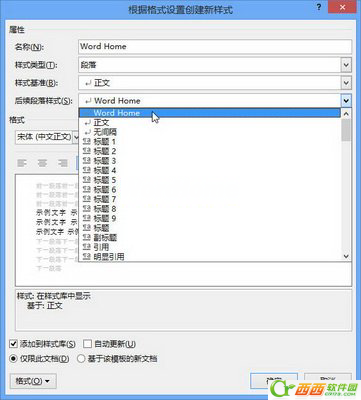 第5步,單擊“后續段落樣式”下拉三角按鈕,在“后續段落樣式”下拉列表中選擇新建樣式的后續樣式。本教程選擇新建的樣式作為后續樣式,如圖5所示。