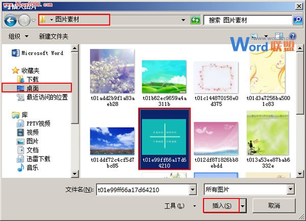 4. 這時會彈出一個“插入圖片”的對話框來,你可以選擇你電腦上的任意你喜歡的圖片,然后單擊“插入”選項即可。