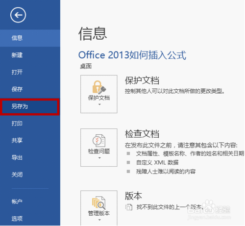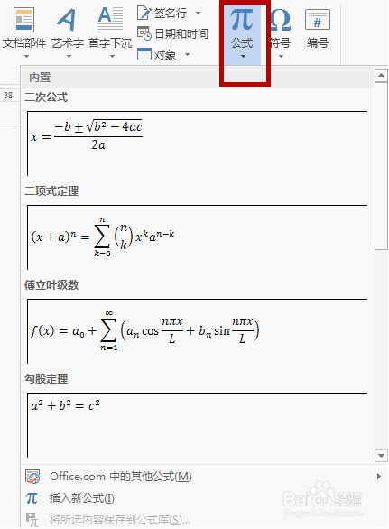 另存好了之后,重新打開文檔,請看“插入”中的公式處,變亮了,這時候可以插入公式了