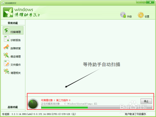 3、打開后選擇掃描清理,然后等待軟件自動(dòng)掃描。