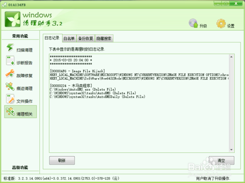5、清理完成后我們可以看看清理相關(guān),可以看到剛剛的清理日志。
