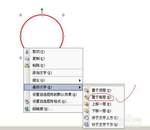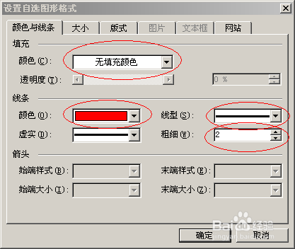 雙擊圖形設置為“無填充色”,線條寬度為2磅,顏色為紅色,“疊放次序”為“最底層”。