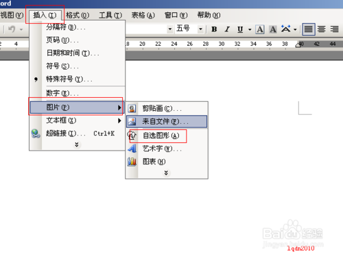 打開word2003,“插入→圖片→自選圖形”