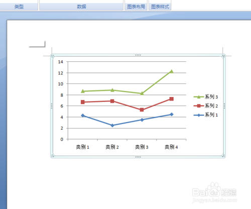 點(diǎn)擊你需要的類型圖。我選擇的是折線圖,你的word文檔里面會(huì)出現(xiàn)一個(gè)數(shù)據(jù)圖、。
