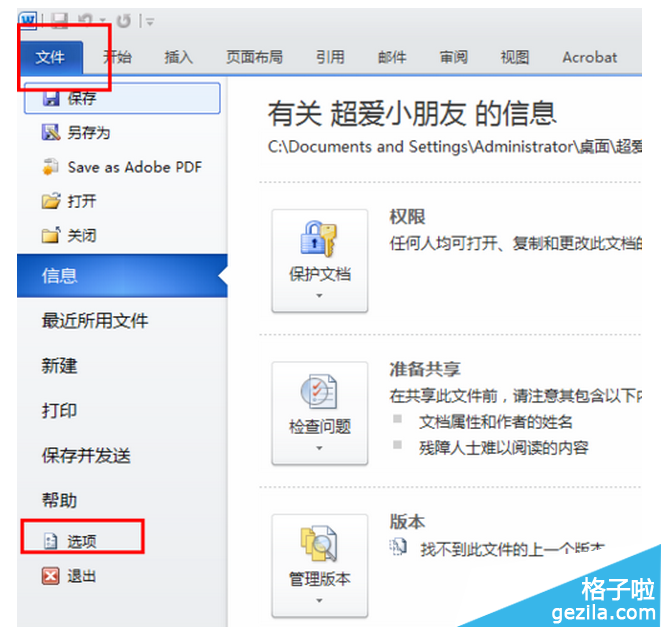點擊文檔左上角的【開始】,然后找到【選項】一項打開
