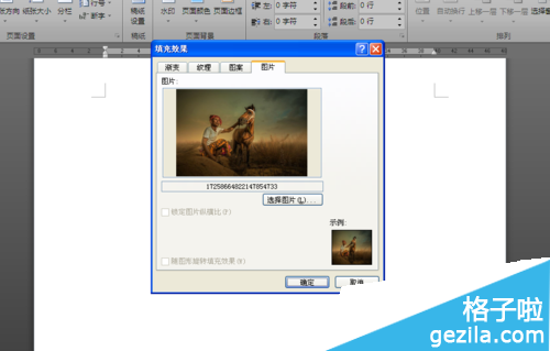 在填充效果對話框中選擇圖片,在單擊選擇圖片