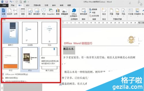 點擊[首頁], 會有個彈出框, Word會彈出內置的一些封面的模版, 當然首頁也可以自己創作, 現在我們用默認模版實驗下, 隨便選擇一個就可以了