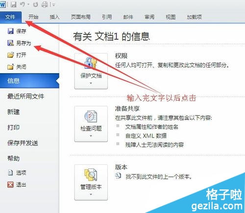 文字輸入完成后點(diǎn)擊,文檔右上角的【文件】【另存為】