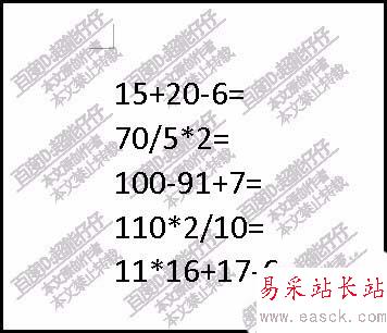 1、在WORD中,輸入幾個加減乘除算式,如下圖所示。