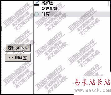 5、把計算添加到右邊的框中,再在右下方這里點擊確定,把計算調出到界面菜單欄方法。