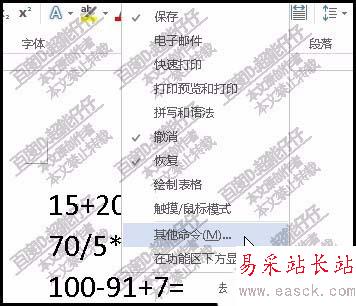 2、在界面上方這里點下拉按鈕,彈出菜單中點擊:其它命令