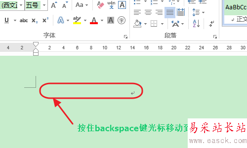 還是將光標(biāo)定位在第一行任意位置,然后按下快捷鍵Ctrl+enter,此時(shí)頁(yè)面就會(huì)變成2張,接下來我們將光標(biāo)所在位置按住backspace鍵移動(dòng)到行的最前面,這樣頁(yè)面恢復(fù)到一張,而表格前面有了空行;